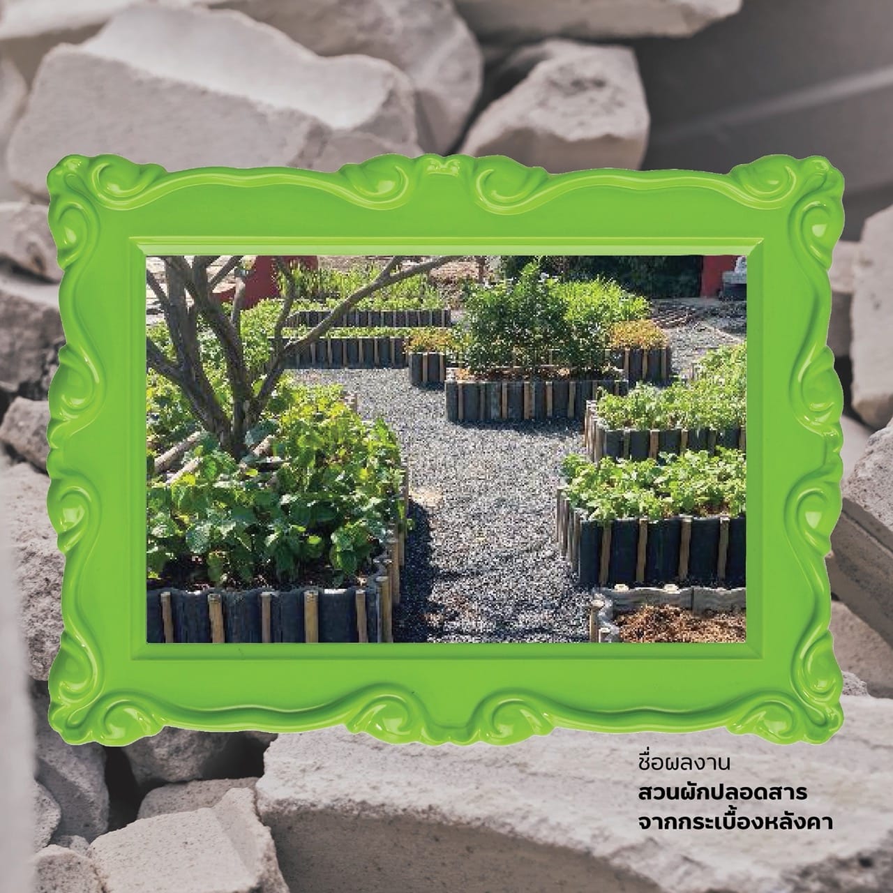 โดยกระถางต้นไม้จากกระเบื้องหลังคานี้ เราใช้กับทั้งแบคยาร์ดในโครงการ และแปลงผักในแคมป์ก่อสร้างเลยค่ะ