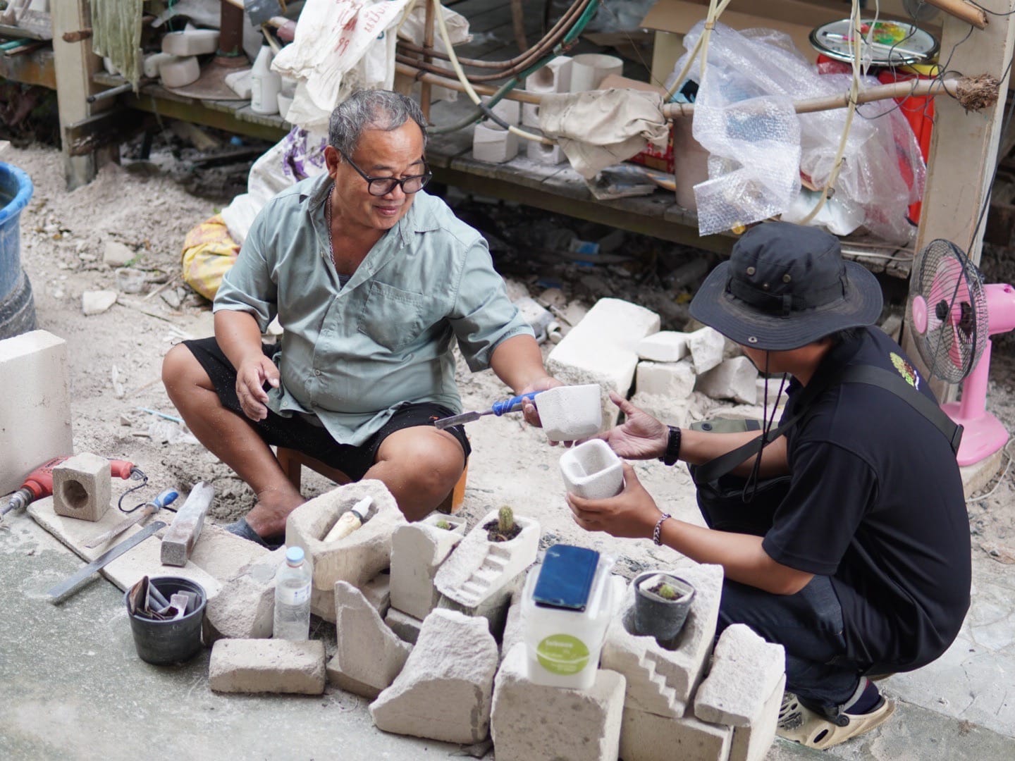 หลังจากที่เรารวบรวมเศษคอนกรีตมวลเบาเหลือทิ้งจากการก่อสร้างแล้ว ก็จะส่งต่อไปยังชุมชนบางกระสั้น อ.บางปะอิน จ.พระนครศรีอยุธยา ที่เชี่ยวชาญด้านการแปรรูปผลิตภัณฑ์โดยเฉพาะ ร่วมกันดีไซน์เศษอิฐมวลเบา ออกมาเป็น “กระถางอิฐมวลเบา” กระถางต้นไม้ที่มีคุณสมบัติเด่นคือ กักเก็บความชื้นได้ดี และยังช่วยขยายเวลาการรดน้ำต้นไม้ดีกว่ากระถางทั่วไป นอกจากจะเป็นการลดผลกระทบต่อสิ่งแวดล้อมแล้ว ยังเป็นการช่วยสร้างอาชีพ สร้างรายได้เสริมให้กับชุมชนอีกด้วย