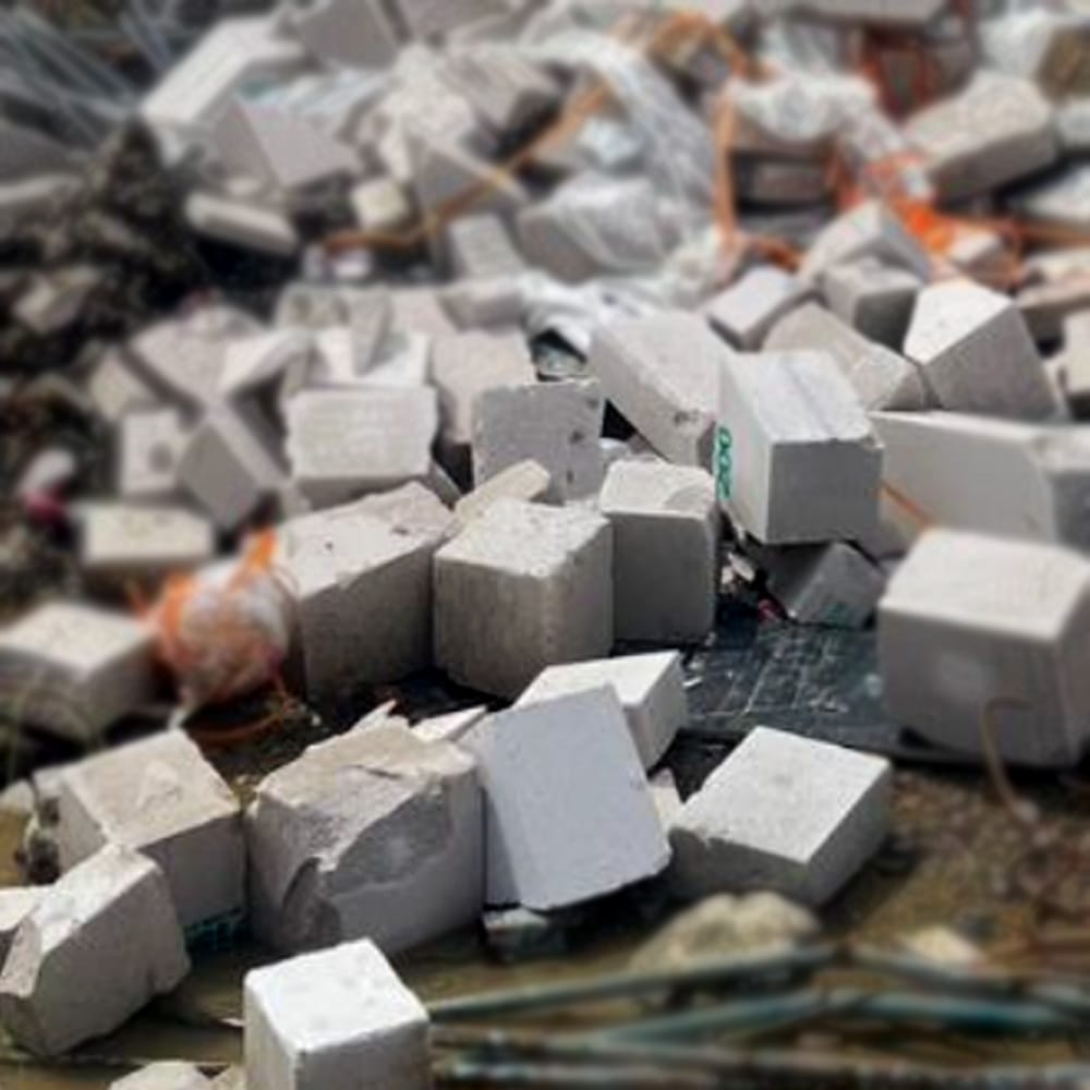 เก็บเศษอิฐมวลเบา จากพื้นที่ก่อสร้าง
