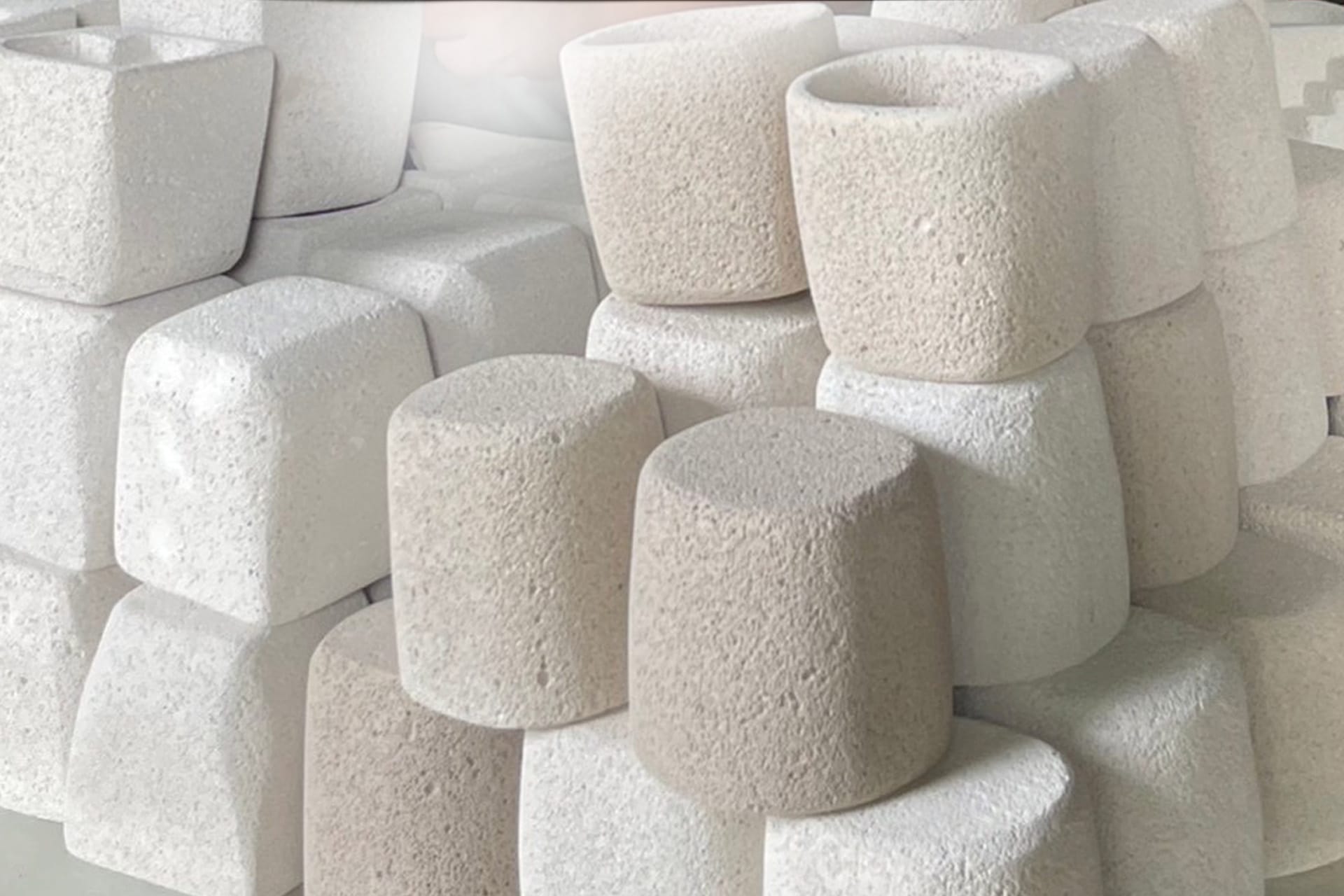 หลังจากที่เรารวบรวมเศษคอนกรีตมวลเบาเหลือทิ้งจากการก่อสร้างแล้ว ก็จะส่งต่อไปยังชุมชนบางกระสั้น อ.บางปะอิน จ.พระนครศรีอยุธยา ที่เชี่ยวชาญด้านการแปรรูปผลิตภัณฑ์โดยเฉพาะ ร่วมกันดีไซน์เศษอิฐมวลเบา ออกมาเป็น “กระถางอิฐมวลเบา” กระถางต้นไม้ที่มีคุณสมบัติเด่นคือ กักเก็บความชื้นได้ดี และยังช่วยขยายเวลาการรดน้ำต้นไม้ดีกว่ากระถางทั่วไป นอกจากจะเป็นการลดผลกระทบต่อสิ่งแวดล้อมแล้ว ยังเป็นการช่วยสร้างอาชีพ สร้างรายได้เสริมให้กับชุมชนอีกด้วย