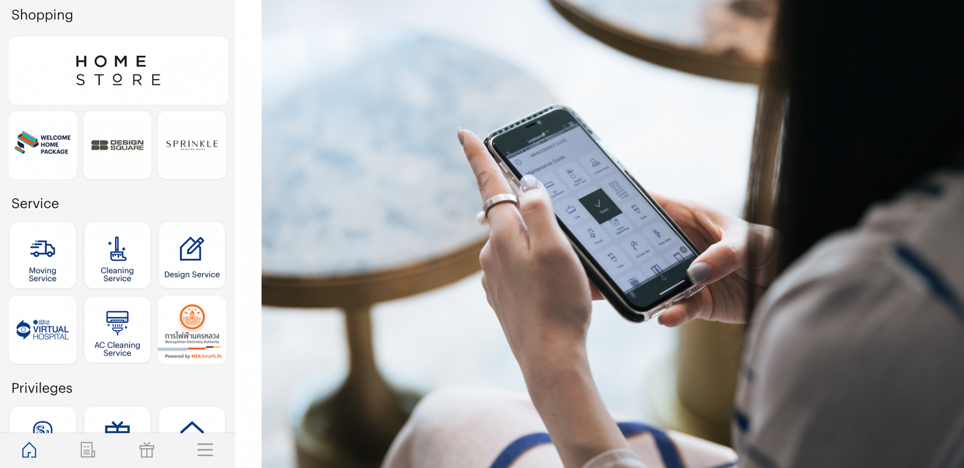 ให้ทุกเรื่องอยู่อาศัยเป็นเรื่องง่าย ด้วยเทคโนโลยีที่เราคิดเพื่อชีวิตคุณ กับ Sansiri Home Service App ที่ให้บริการคุณจบในที่เดียว ไม่ว่าจะติดตามความคืบหน้าการก่อสร้างของโครงการ ดูยอดผ่อนค่างวด พร้อมแจ้งเตือนเมื่อใกล้ถึงเวลาชำระ จะจ่ายค่าไฟ ติดต่อรับพัสดุก็ง่ายดาย หรือแม้แต่การช้อปปิ้งเครื่องใช้ในบ้าน ก็สามารถทำได้ผ่านแอปเดียว ไม่ต้องปวดหัวกับการสั่งงานหลายๆแอปให้ชีวิตวุ่นวาย