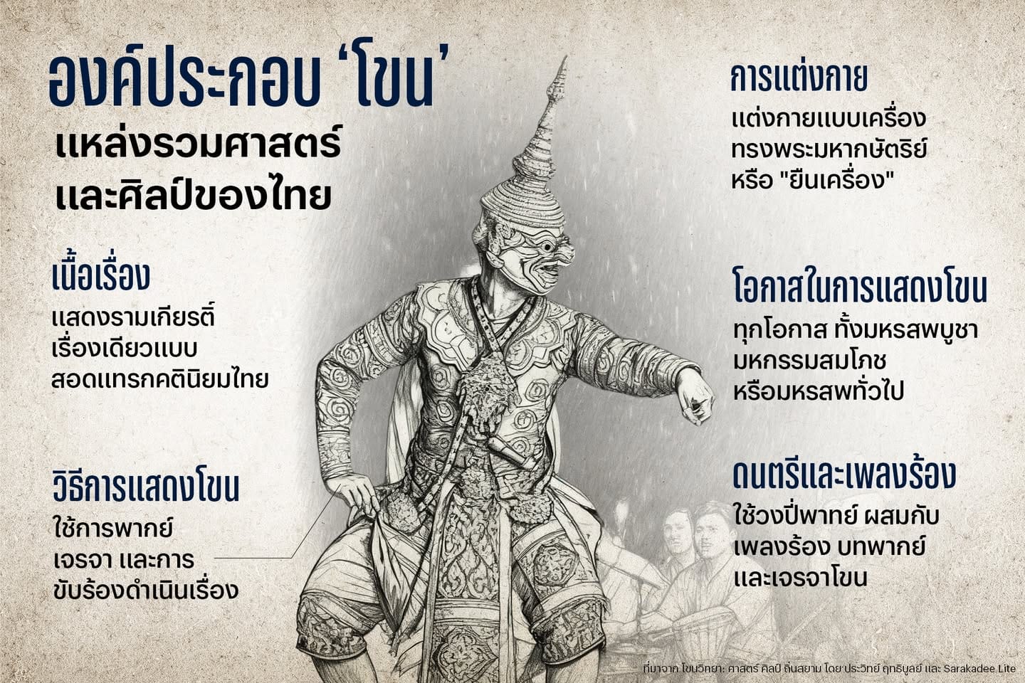ที่มาจาก โขนวิทยา: ศาสตร์ ศิลป์ ถิ่นสยาม โดย ประวิทย์ ฤทธิบูลย์ และ Sarakadee Lite