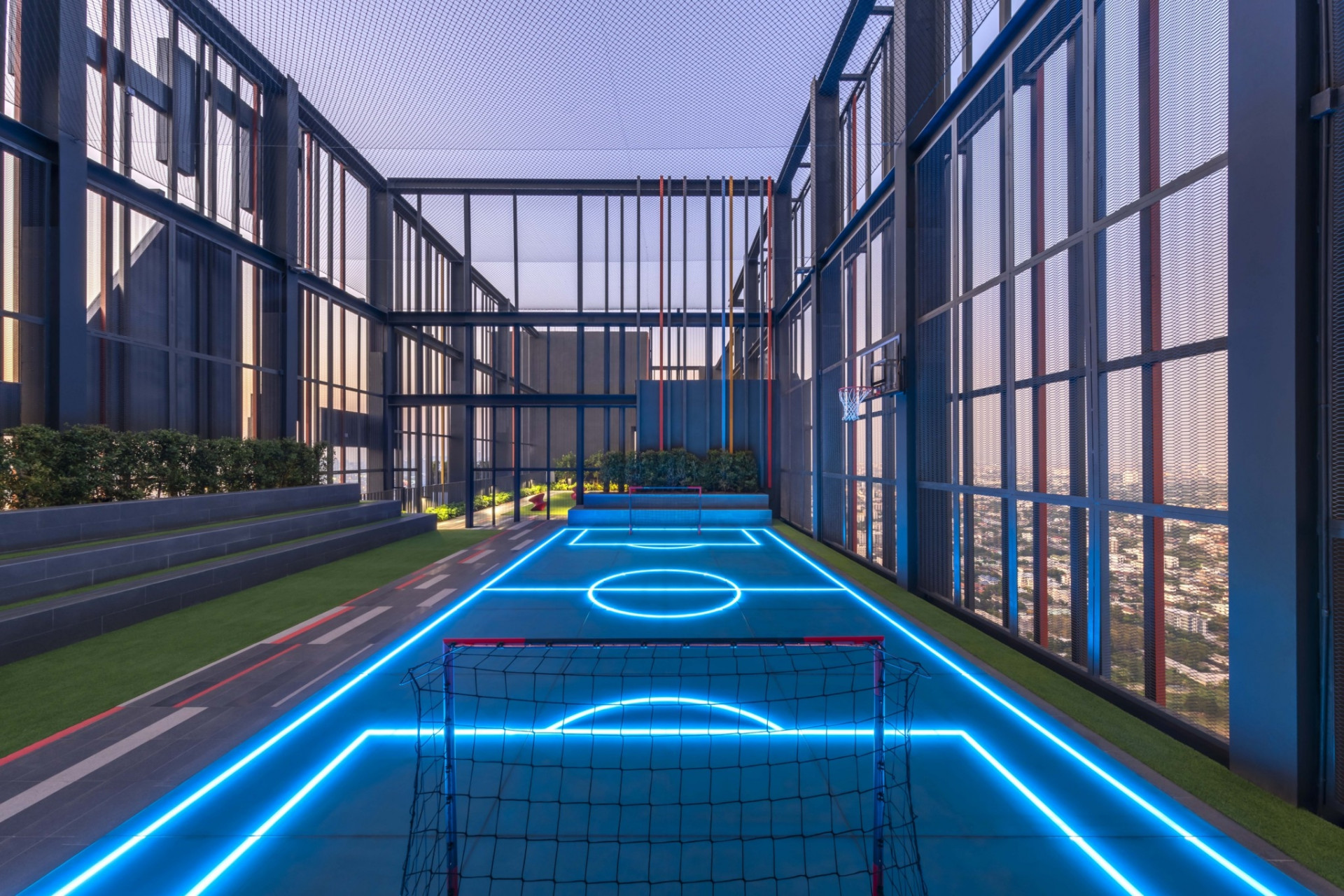 มาออกกำลังกายให้สนุกแบบล้ำๆ เพลินจนไม่รู้เหนื่อยกับ LED Multi-Sport Court หรือสนามกีฬาปรับเปลี่ยนได้ ที่ เดอะ ไลน์ สุขุมวิท 101 มาพร้อมเทคโนโลยีใหม่กับสนามกีฬาปรับเปลี่ยนได้ ด้วยระบบพื้นที่ทันสมัย ซ่อนระบบไฟ LED ใต้พื้นแก้วหนา สามารถรองรับแรงกระแทกได้ดี พร้อมรองรับแมตซ์สำคัญของคุณกับเพื่อนๆ ที่ไม่ว่าจะชอบกีฬาแบบไหน ทั้ง บาสเก็ตบอล ฟุตบอล เทนนิส ฯลฯ ก็เลือกสนุกได้เลยตามสไตล์