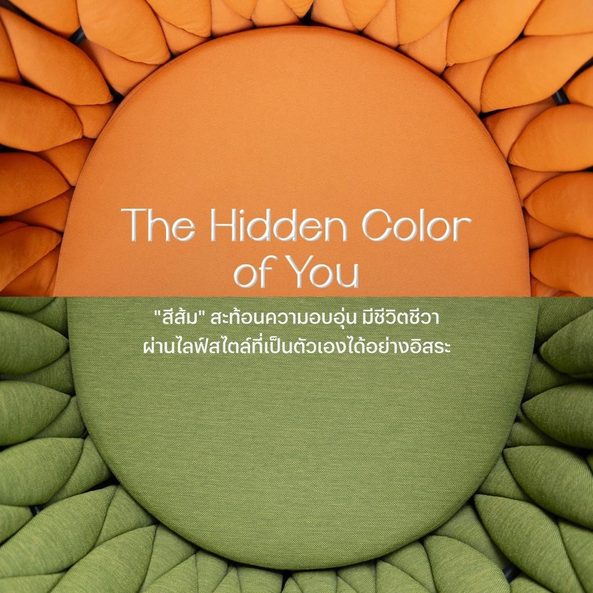 TheHiddenColorOfYou แรงบันดาลใจที่ซ่อนอยู่ สู่สีสันที่เป็นคุณ “สีส้ม” สีสันแห่งความอบอุ่น มีชีวิตชีวา และเข้าถึงง่าย โดยแฝงไว้ซึ่งกลิ่นอายแห่งความผ่อนคลายและสบายใจในพื้นที่ที่เป็นตัวเองได้เต็มที่