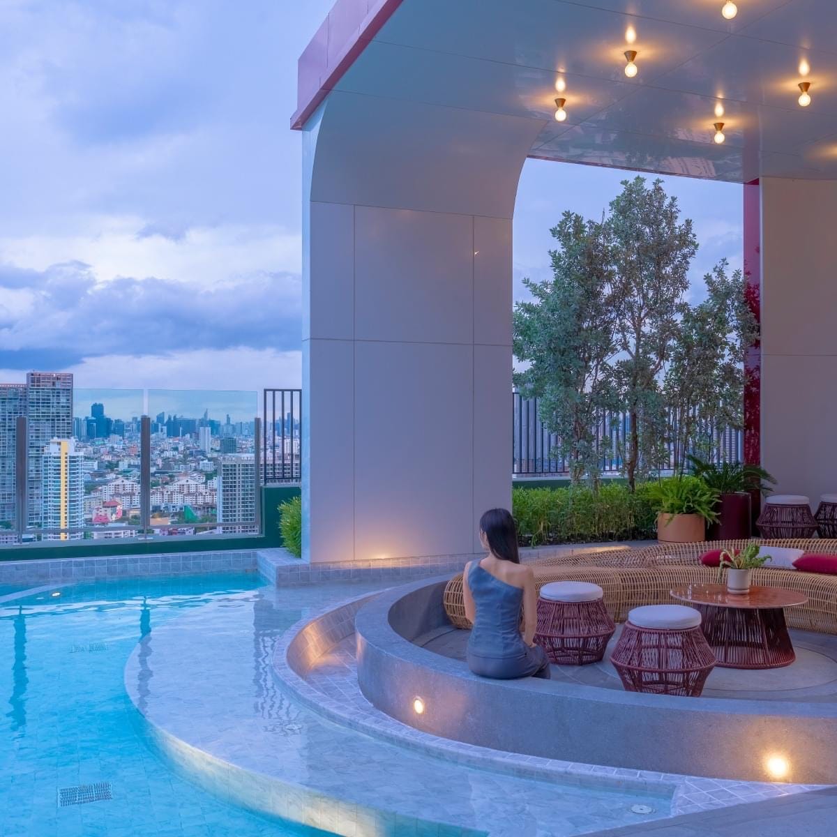 พื้นที่ Hangout นั่งพักริมสระว่ายน้ำ ไม่ว่าจะพบปะกับเพื่อนๆ หรือมานั่งคนเดียวก็เหมาะ