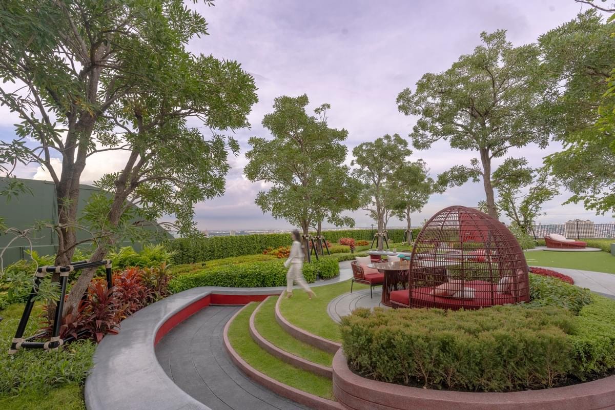 Sky Garden ที่เป็นมากกว่าสวนบนดาดฟ้า เป็นพื้นที่ให้คุณได้มานั่งพักผ่อนหรือทำกิจกรรมร่วมกับเพื่อนบ้านบนพื้นที่สีเขียวชั้น 33