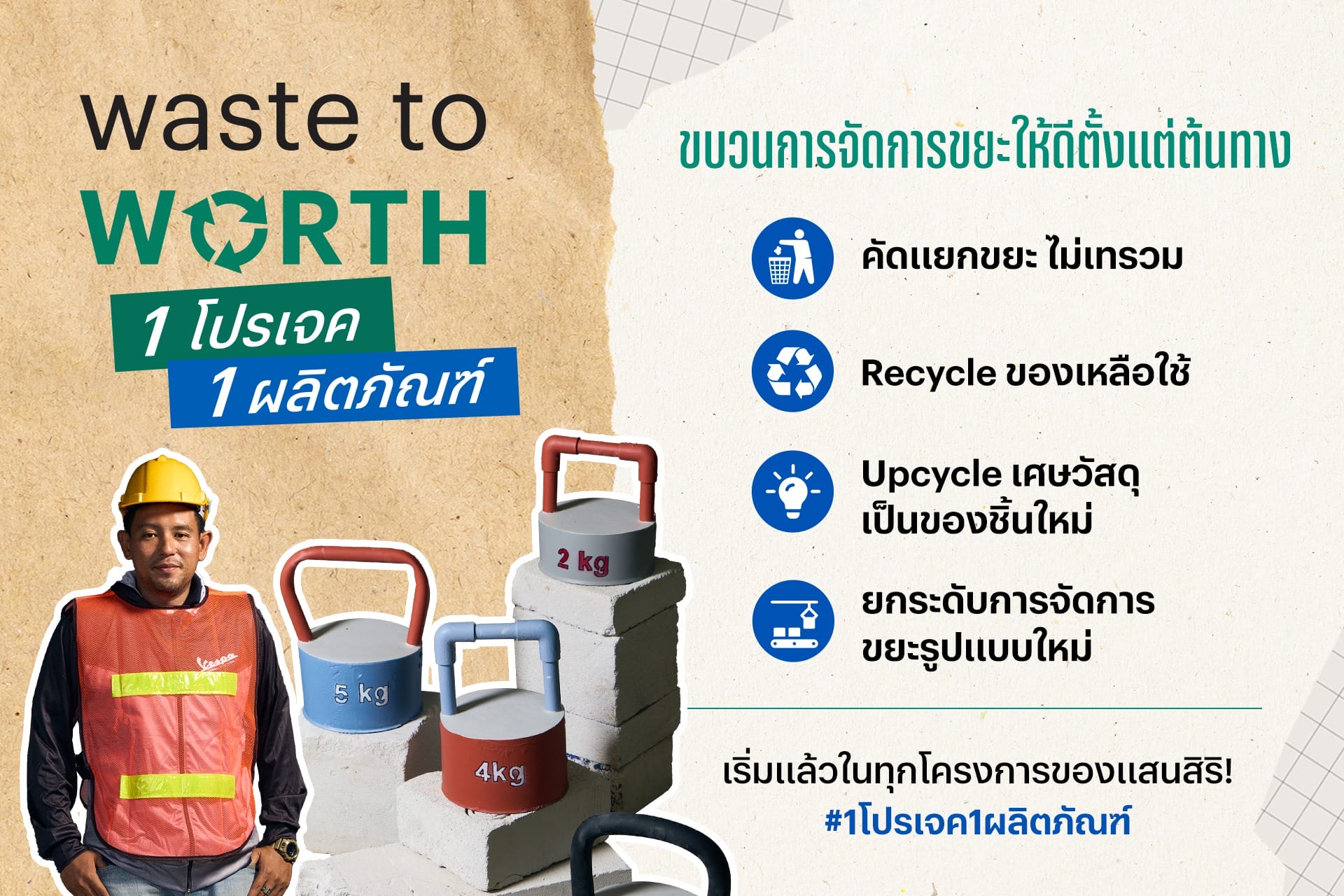 เพราะเราเชื่อว่าไม่ว่าจะเป็นขยะภายในบ้านหรือขยะจากการก่อสร้าง หากมีการจัดการที่ดีตั้งแต่แรก ก็สามารถพัฒนาให้วัสดุเหลือทิ้งมีคุณค่าและมีประโยชน์ต่อคนอีกมาก