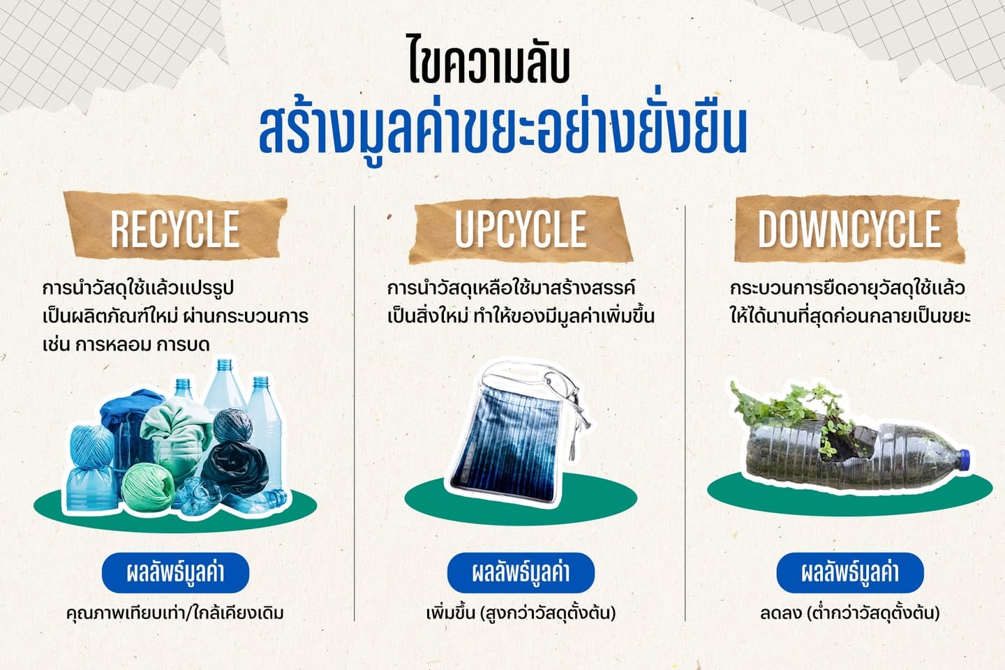 วนไขความลับแนวคิด Recycle – Upcycle – Downcycle ปลดล็อกความลับการสร้างสรรค์ของเหลือใช้ใกล้ตัว เพื่อโลกที่ดีกว่า