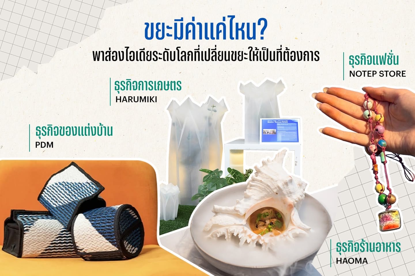 ในปัจจุบันที่การอนุรักษ์สิ่งแวดล้อมเป็นสิ่งจำเป็น การมองขยะหรือสิ่งเหลือใช้ในมุมที่ต่างออกไปจึงเป็นสิ่งสำคัญ ไม่ว่าจะเป็นเศษอาหารเหลือใช้ พลาสติกใช้แล้ว กระดาษเก่า ขวดแก้ว หรือแม้แต่เสื้อผ้าที่ไม่ได้ใส่แล้ว สิ่งเหล่านี้สามารถแปลงเป็นทรัพยากรที่มีค่า พัฒนาเป็นสินค้าติดเทรนด์ และสร้างรายได้อีกมาก